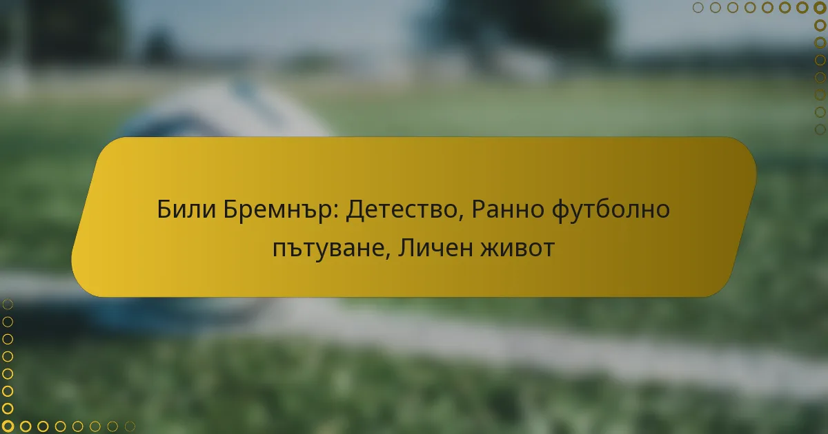 Били Бремнър, легендарна фигура във футбола, израснал в Шотландия, където детството му било дълбоко повлияно от страстта към играта и силната подкрепа на общността. Неговото ранно футболно пътешествие започнало с местни клубове, демонстрирайки неговата отдаденост и талант, които в крайна сметка довели до успешна професионална кариера. Извън терена, личният живот на Бремнър отразява сложен индивид, оформен от семейството и взаимоотношенията, оставяйки трайно наследство в света на футбола.