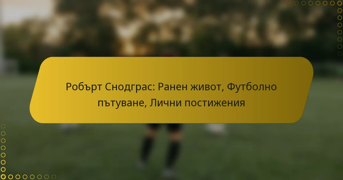 Робърт Снодграс, роден в Шотландия, израства в подкрепяща среда, която насърчава страстта му към спорта и ангажираността в общността. Футболната му кариера го е видяла как преминава от обещаващ млад талант до опитен професионалист, правейки значителни приноси както в Премиър лийг, така и в Чемпиъншип. Освен постиженията си на терена, Снодграс е известен и с ангажимента си към благотворителни инициативи и взаимодействие с феновете, подчертавайки влиянието си както в, така и извън футбола.